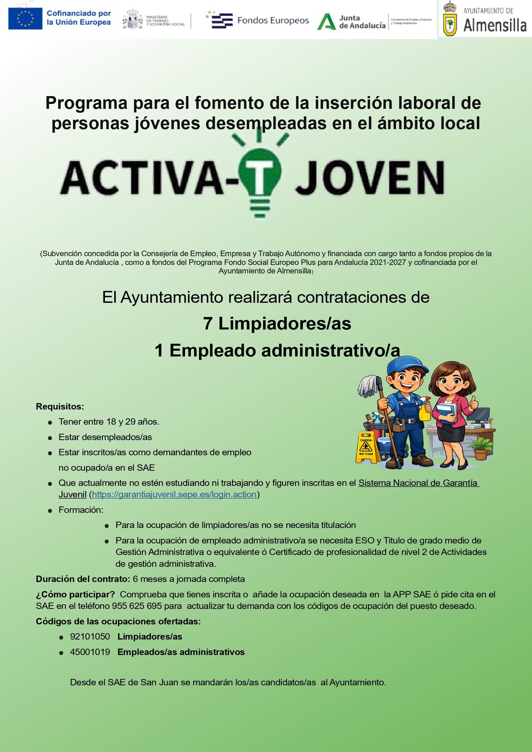 Programa para el fomento de la inserción laboral de personas jóvenes en el ámbito local. ACTIVA T JOVEN