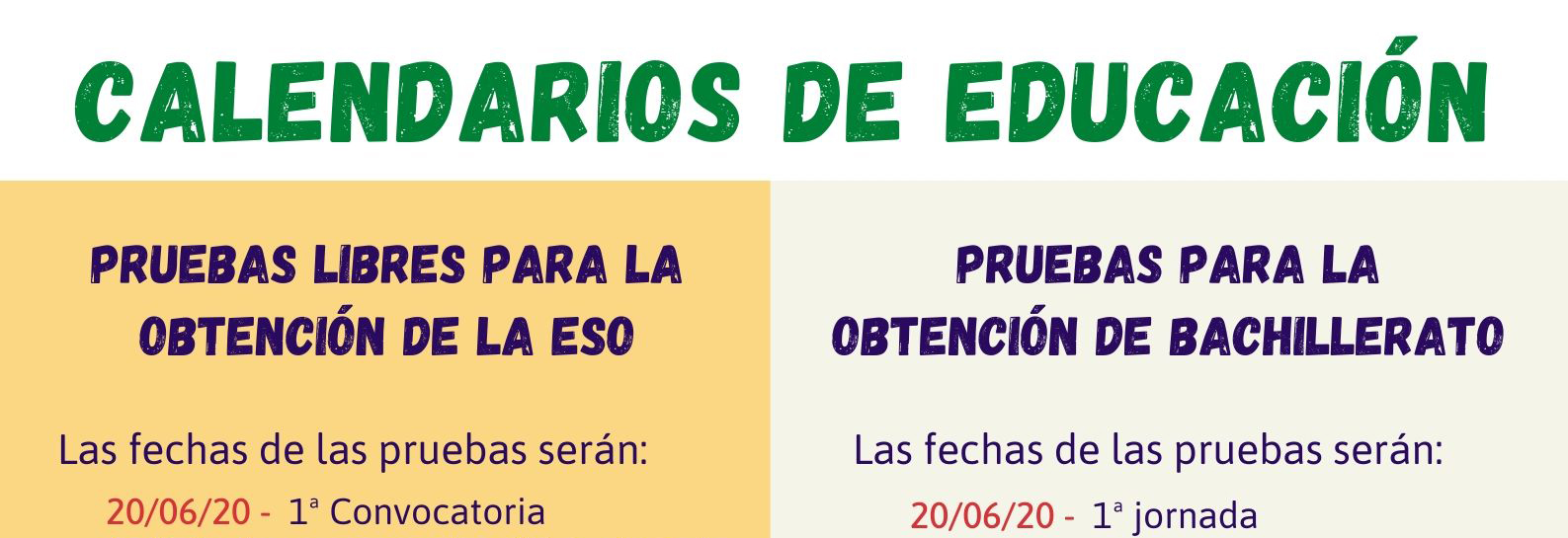 - 21/05/20: Calendarios de actuaciones de determinados procedimientos administrativos del ámbito educativo, afectados por la situación de crisis sanitaria provocada por el coronavirus COVID-19. (Modificado el 03/06/20).