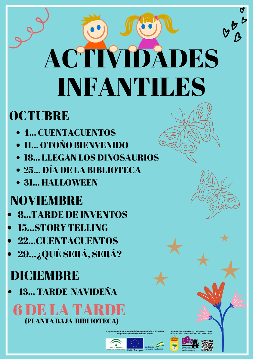 A partir del viernes 4 de octubre comienza el Programa de Actividades Infantiles de Otoño de la Biblioteca Municipal y que se desarrollará durante todos los viernes a las 6 de la tarde hasta 13 de diciembre.