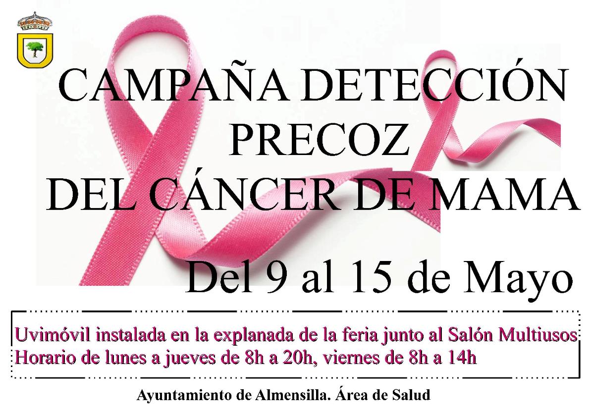 Desde la Concejalía de Salud del Ayuntamiento de Almensilla informamos que la Unidad Móvil del Programa de Detección Precoz del Cáncer de Mama, se instalará en la explanada de la feria, C/ Calvario, junto a Edificio Multiusos, desde el 9 al 15 de mayo.