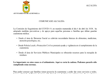 -29/09/20: Se adopta la medida de restricción a la movilidad de la población de Casariche (Sevilla) como consecuencia de la situación epidemiológica por COVID-19.
