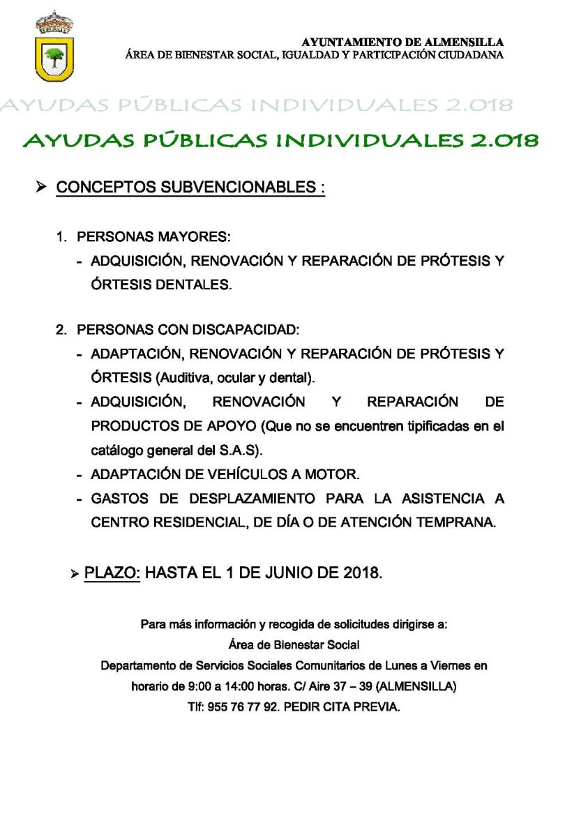 Se abre el plazo de presentación de solicitudes de las Ayudas Públicas Individuales para personas mayores y personas con discapacidad hasta el 1 de junio de 2018.