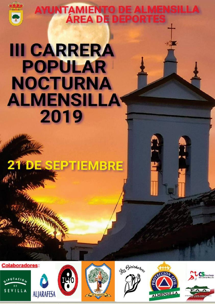 El Ayuntamiento de Almensilla organiza la "III Carrera Popular Nocturna Almensilla 2019" a celebrar el próximo sábado día 21 de septiembr e .