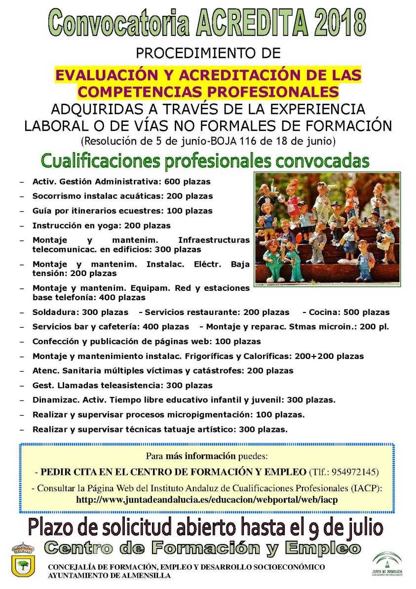 Más información en la Página Web del Instituto Andaluz de Cualificaciones Profesionales (IACP) o pidiendo cita en el Centro de Formación y Empleo municipal (Tlf.: 954972145).