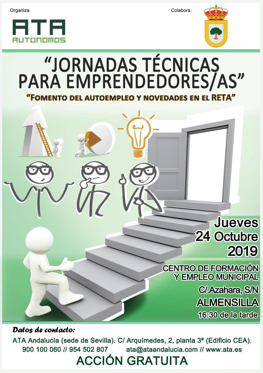 El jueves 24 de octubre a las16.30h tendrá lugar en el Centro de Formación y Empleo una jornada impartida por la Asociación de Trabajadores Autónomos (ATA) para el Fomento del Autoempleo.