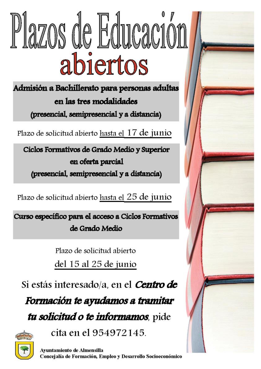 Informamos de los distintos plazos que actualmente están abiertos por parte de la Consejería de Educación y Deporte: