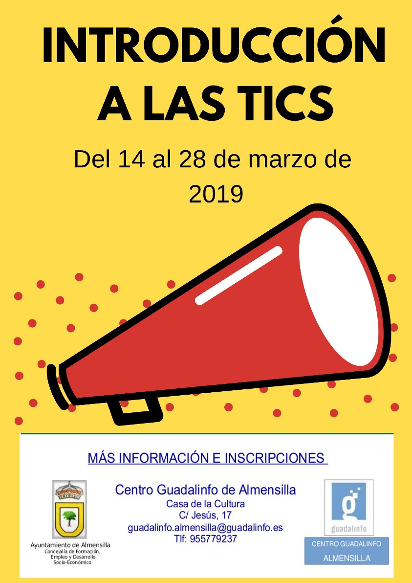 - Curso Introducción a las TICs . Del 14 al 28 de marzo. Jueves y viernes de 11 a 13 h.