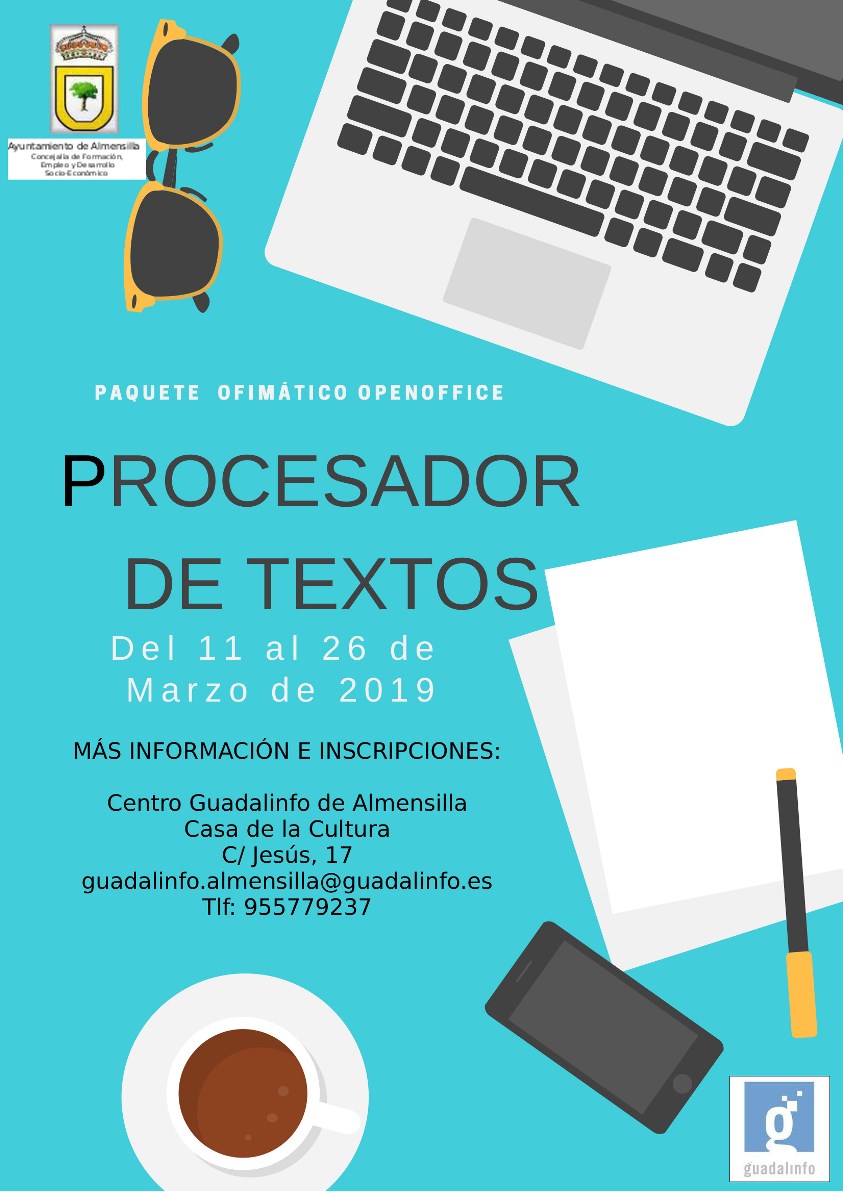 - Curso Procesador de Textos . Del 11 al 26 de marzo. Lunes y martes de 11 a 13 h.