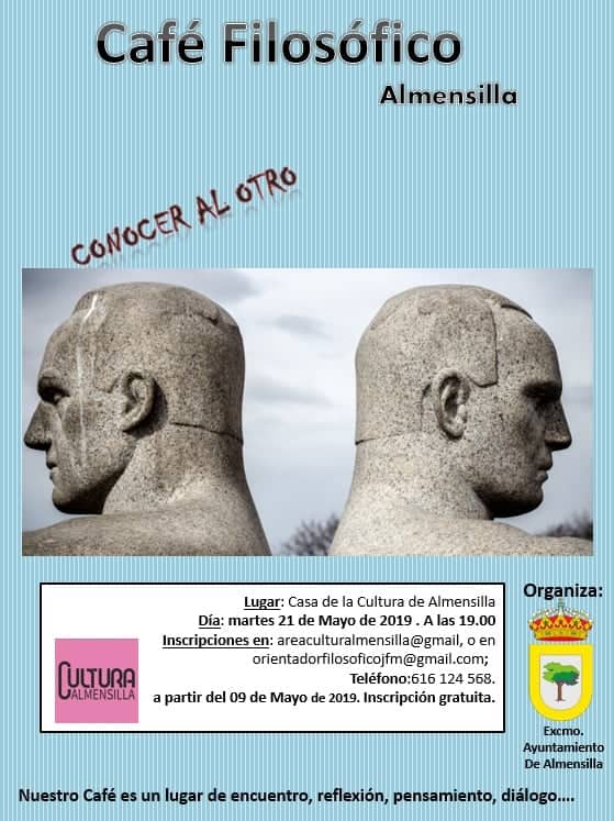 El próximo martes 21 de mayo tenemos nueva sesión del Café Filosófico, esta vez con el tema 'Conocer al otro'.