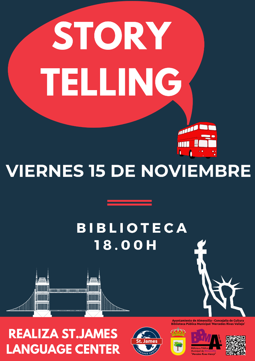 El próximo viernes 15 de noviembre se llevará a cabo en la Biblioteca Municipal una sesión de StoryTelling (CuentaCuentos en inglés). Será a las 6 de la tarde en el Rincón Infantil (planta baja) y estará dirigida por el profesorado de la escuela de idiomas ‘St. James Language Center’.