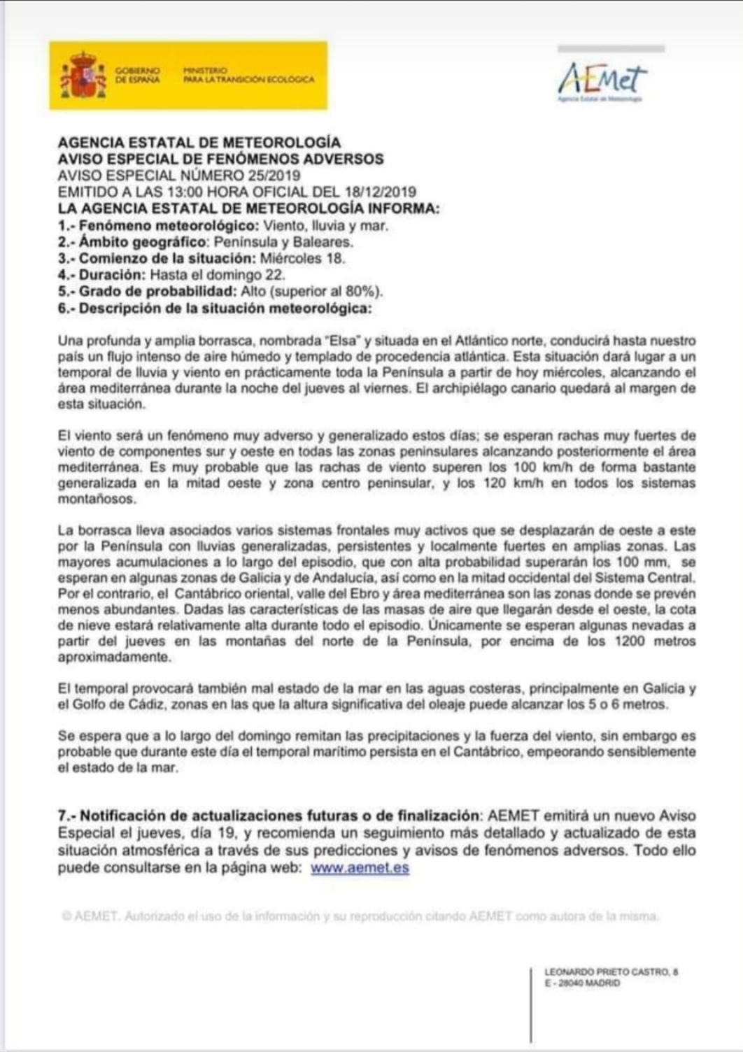 Por ello, recomendamos extremen la precaución tanto en trayectos a pie como en vehículos y en actividades al aire libre.